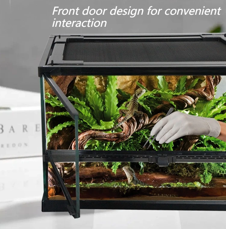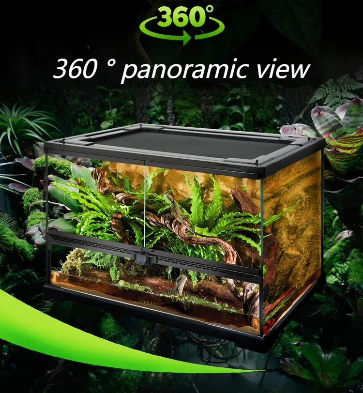 Glass Reptile Terrarium Transparent Amphibious Reptile Breeding Tank Breathable Anti-escape Breeding Box Gecko Lizard Vivarium
